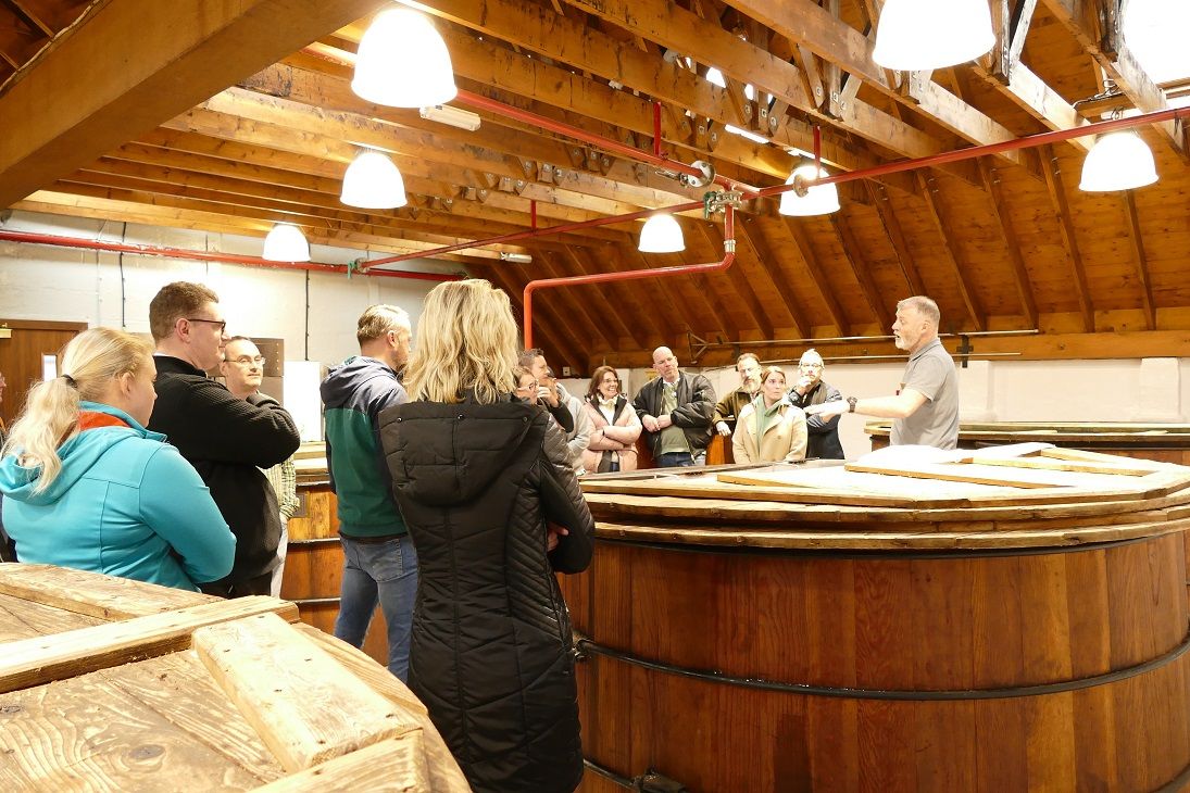 Je kan dit vergelijken met de Coffee of patent still, maar het verschil met Loch Lomond is, dat deze hier niet continu werken. Het voordeel van deze stills is, dat er op verschillende manieren gestookt kan worden en men zodoende zeven verschillende malts op de markt kan brengen. In de malt distilleerderij staan acht washbacks van staal en de malt rijpt vooral op bourbon- en refill vaten. Het water pompt men uit ondergrondse waterreservoirs. Door de grondlagen is dit water in de loop der jaren gezuiverd en prima geschikt voor de bereiding van maltwhisky ook voor het koelwater wordt dit water gebruikt. Men ontvangt bij de Loch Lomond distilleerderij geen bezoekers maar wij kwamen uiteraard wel binnen en kregen van Alan Reid een meer dan uitvoerige rondleiding. Vooral het bezoek aan de eigen ‘cooperage’ was machtig interessant!